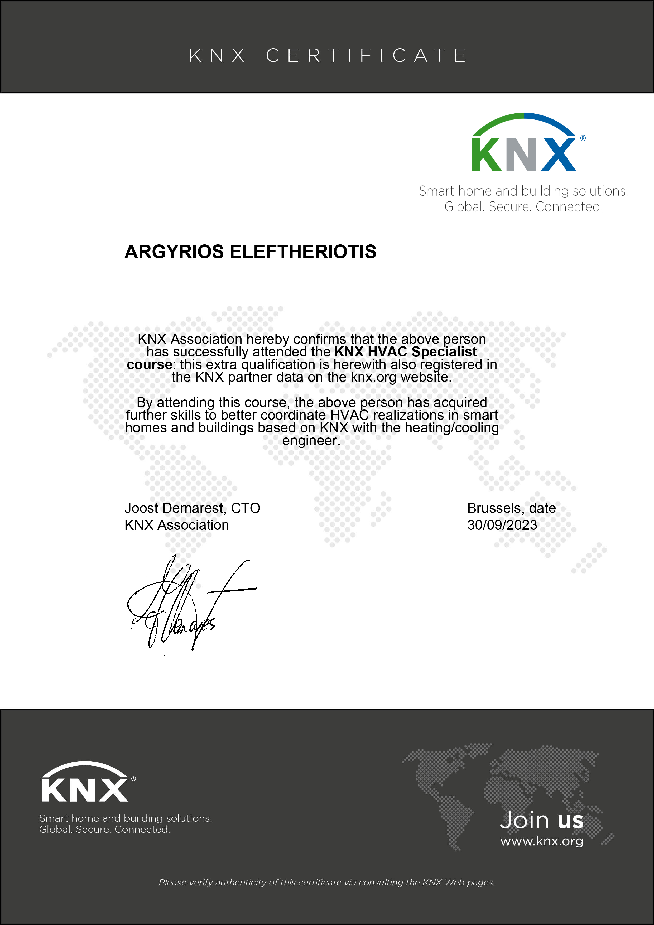 - Πιστοποιημένος εγκαταστάτης συστημάτων KNX