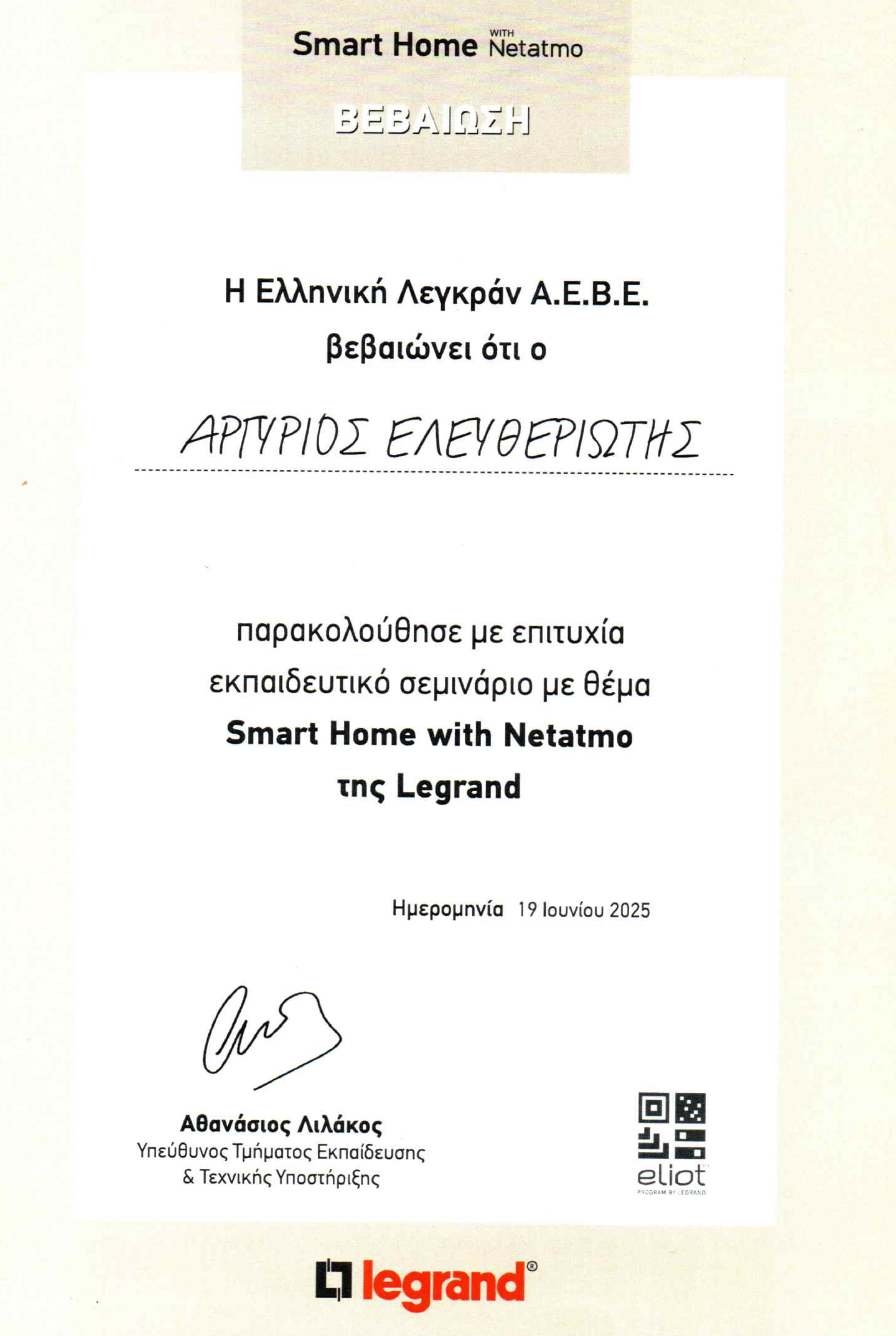 - Εκπαίδευση σε Smart Home with Netatmo (Legrand)